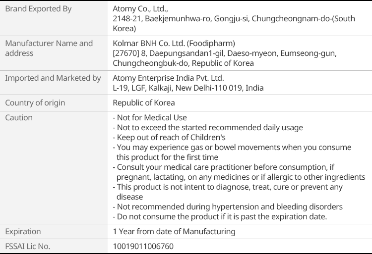 - To know available Pin Code for delivery, Please contact to Customer Care at 0124 695 9000 or write to atomy_in@atomypark.com