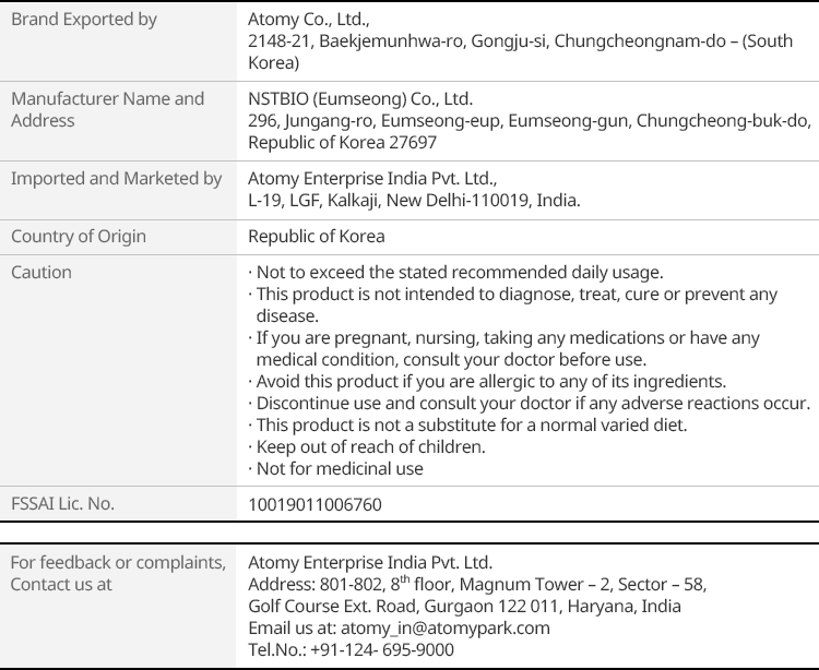 - To know available Pin Code for delivery, Please contact to Customer Care at 0124 695 9000 or write to atomy_in@atomypark.com