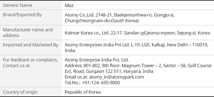 - To know available Pin Code for delivery, Please contact to Customer Care at 0124 695 9000 or write to atomy_in@atomypark.com