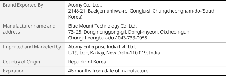 - To know available Pin Code for delivery, Please contact to Customer Care at 0124 695 9000 or write to atomy_in@atomypark.com
