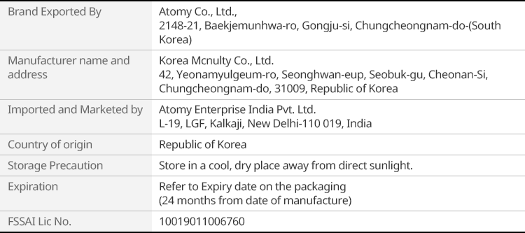 - To know available Pin Code for delivery, Please contact to Customer Care at 0124 695 9000 or write to atomy_in@atomypark.com